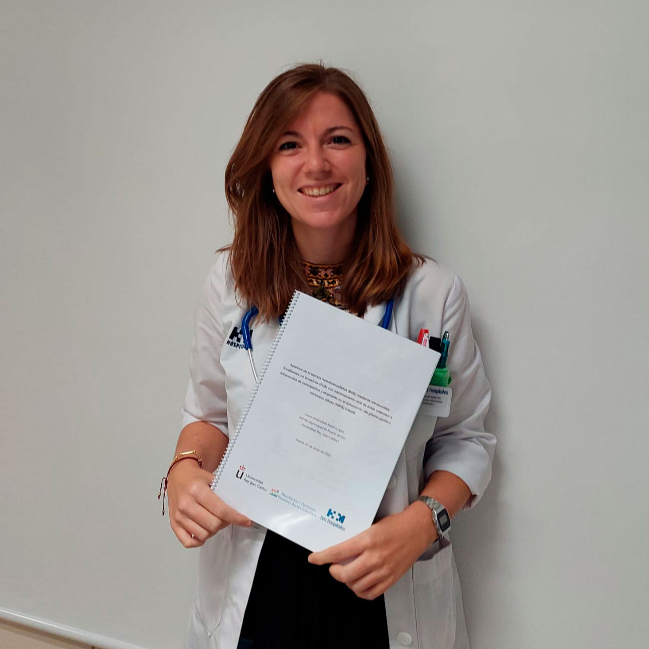 Laura Martín: Apertura de la barrera hematoencefálica (BHE) mediante ultrasonidos focalizados no invasivos (FUS) con administración oral de ácido valproico e intravenosa de carboplatino y etopósido en el tratamiento del glioma pontino intrínseco difuso (DIPG) infantil. Máster de Medicina, Universidad Rey Juan Carlos.